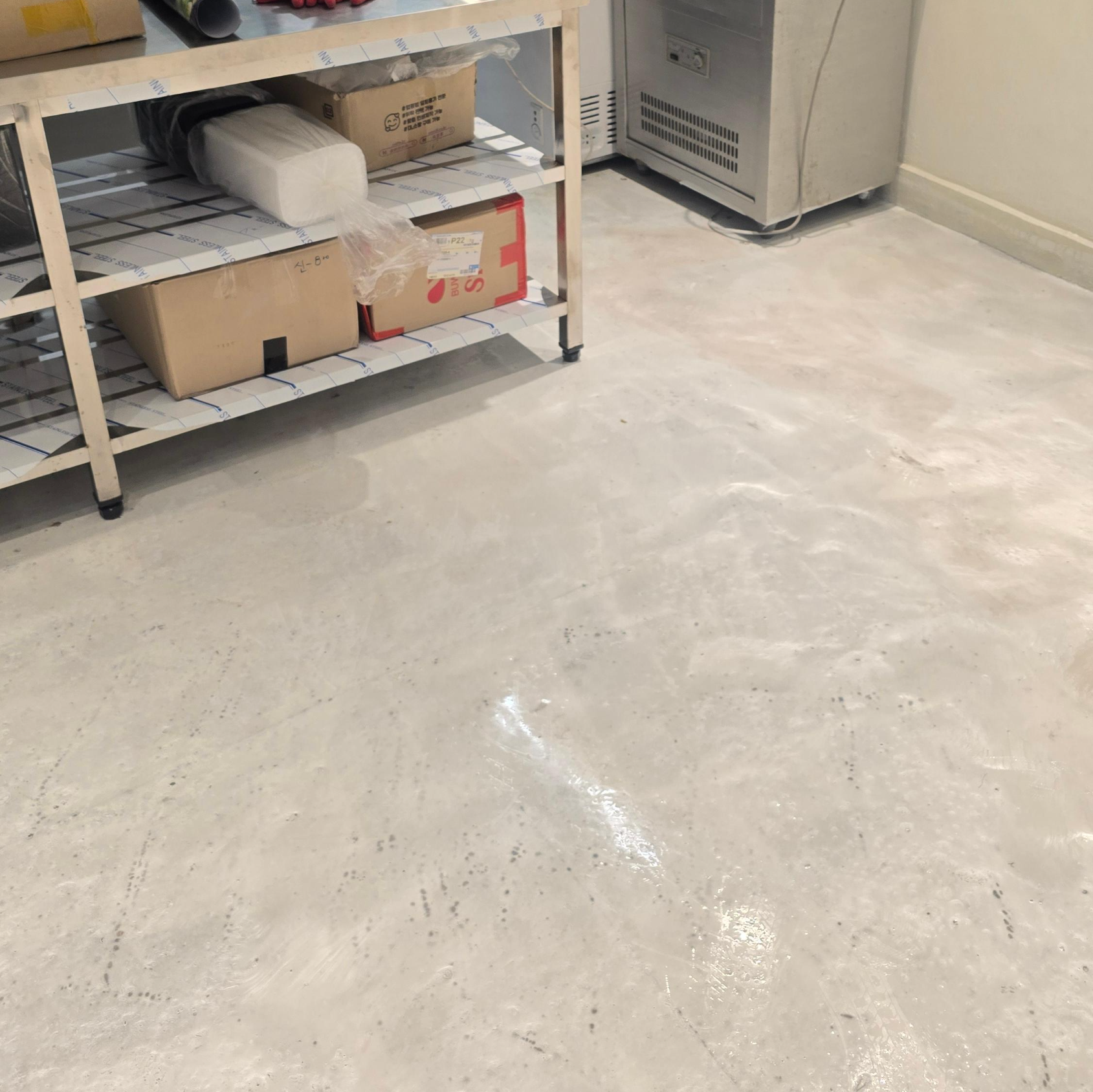바닥에 타일 대신 셀프로 할 수 있도록 에폭시 작업을 했는데요, 하도 1일 진행하고 건조 후 다시 1차 작업을 했는데,,,
