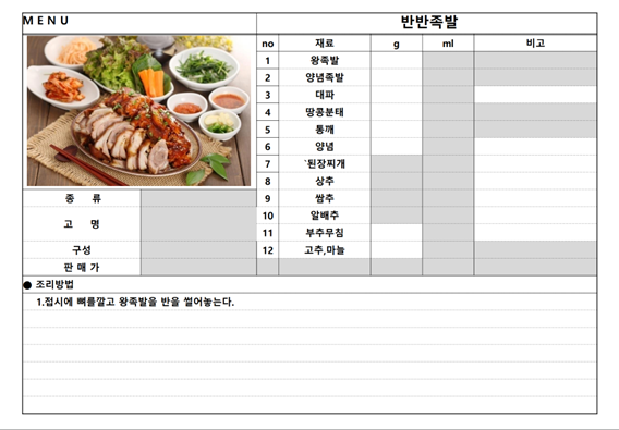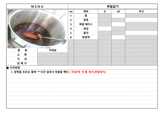 이론교육 : 족발 보쌈 요리에 기본 원리와 필수 이론을 쳬계적으로 교육합니다.