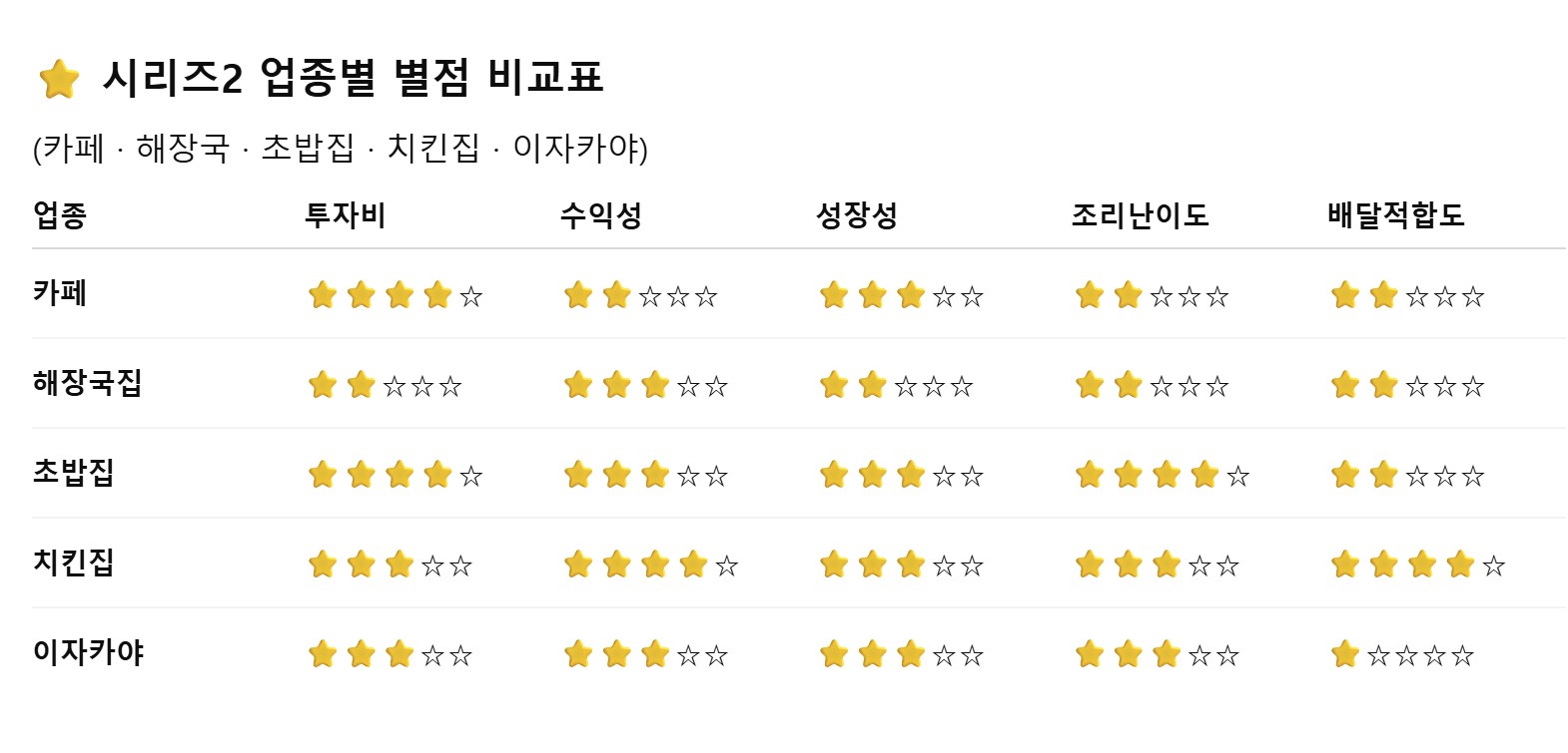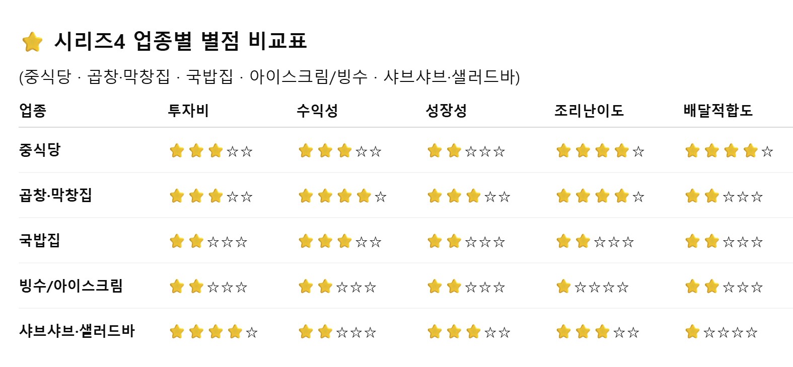 외식업 창업? 업종별 별점비교 시리즈 (총 25편 완결)